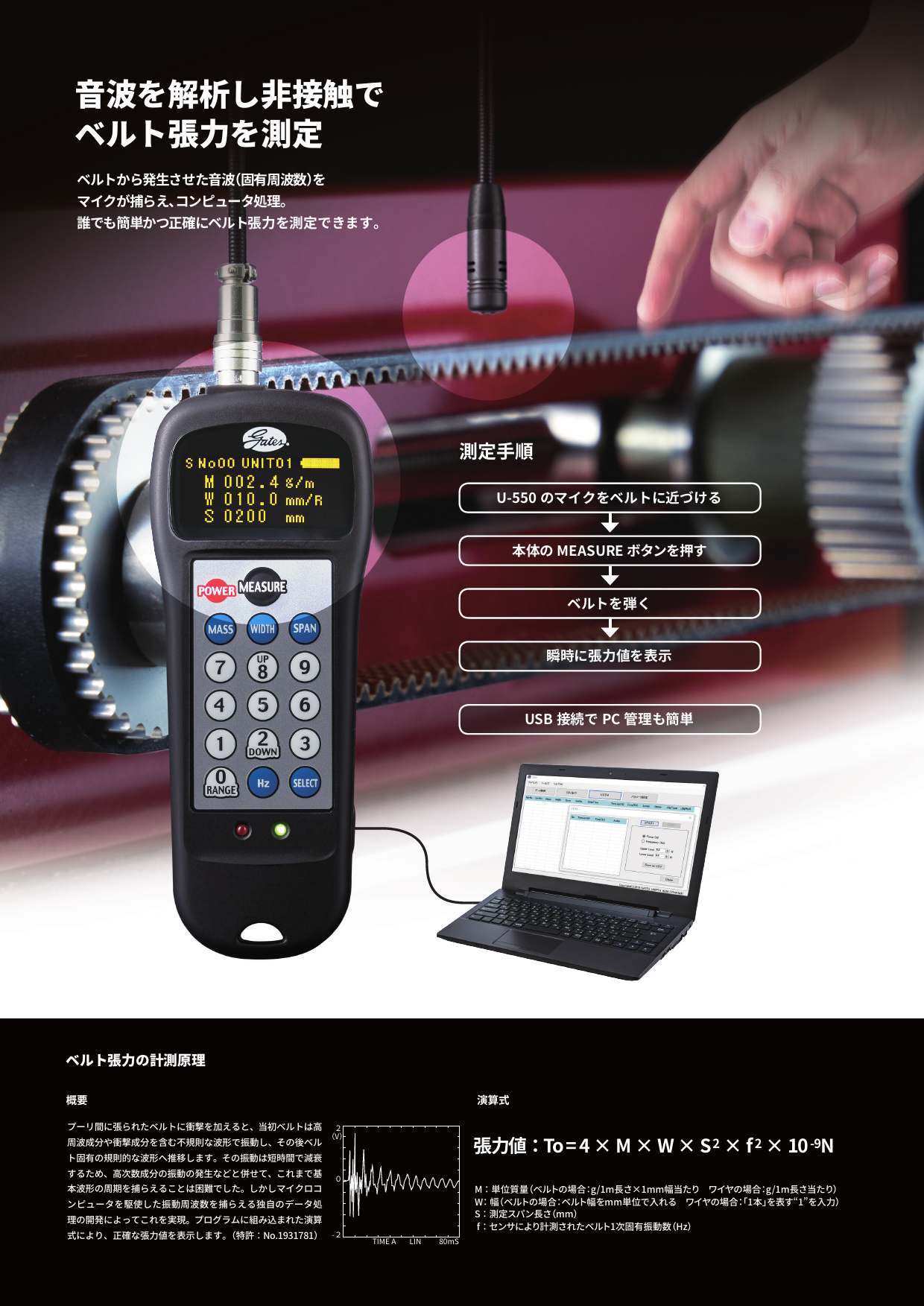 本產品體積輕巧,方便維護人員攜帶,可廣泛應用於汽車產業、工具機、鋼鐵、紡織、食品、電子等多種領域,是提升產能、確保品質的理想選擇。ME-U550聲波張力計,為您提供最精準的皮帶張力檢測解決方案。